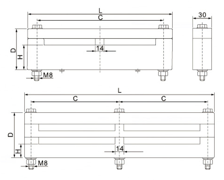型號(hào) | 母線規(guī)格 | C | D | L | H |