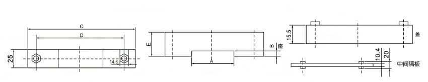 型號(hào) | A | B | C | D | E | 適用銅排 | 備注 |