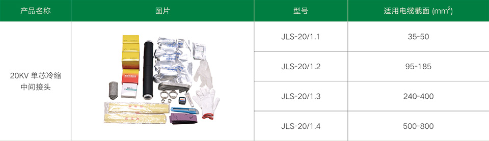 20kV單芯冷縮中間接頭系列產(chǎn)品,適用于12/20、18/24kV單芯聚乙烯和交聯(lián)聚乙烯電力電纜。冷縮電纜附件采用進口液態(tài)硅橡膠材料制造而成,不但具有十分優(yōu)良的電氣性能,而且還具有優(yōu)異的憎水性、高彈性、使用壽命長及恒定的收縮壓力等物理特性。采用冷縮電纜附件,無需明火及特殊工具,只需輕輕抽取塑料支撐條即可,就能自動收縮復(fù)位,安裝非常方便于工作。具有良好的電氣性能和機械性能,能在各種惡劣的環(huán)境條件下長期使用。具有重量輕、安裝方便等優(yōu)點。廣泛地應(yīng)用于電力、石油、化工、冶金、鐵路、港口和建筑各個領(lǐng)域。