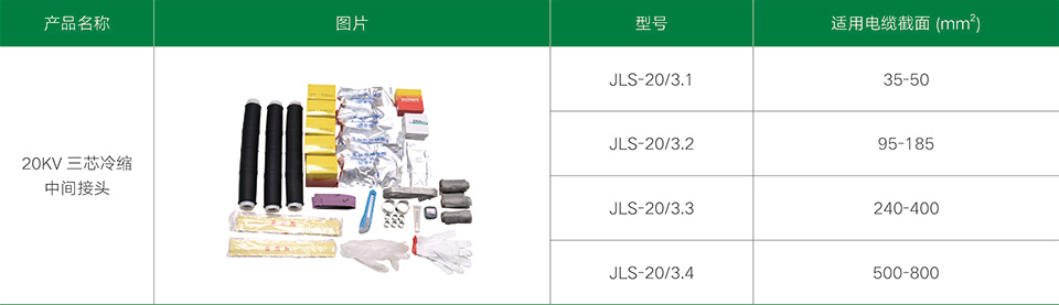 20kV三芯冷縮中間接頭系列產(chǎn)品,適用于12/20、18/24kV三芯聚乙烯和交聯(lián)聚乙烯電力電纜。冷縮電纜附件采用進(jìn)口液態(tài)硅橡膠材料制造而成,不但具有十分優(yōu)良的電氣性能,而且還具有優(yōu)異的憎水性、高彈性、使用壽命長及恒定的收縮壓力等物理特性。采用冷縮電纜附件,無需明火及特殊工具,只需輕輕抽取塑料支撐條即可,就能自動收縮復(fù)位,安裝非常方便于工作。具有良好的電氣性能和機(jī)械性能,能在各種惡劣的環(huán)境條件下長期使用。具有重量輕、安裝方便等優(yōu)點。廣泛地應(yīng)用于電力、石油、化工、冶金、鐵路、港口和建筑各個領(lǐng)域。