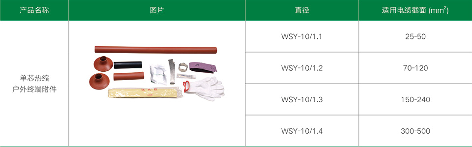當(dāng)前位置:主頁 > 產(chǎn)品展示 > 10KV熱縮電纜終端附件 > 10KV單芯戶外熱縮終端