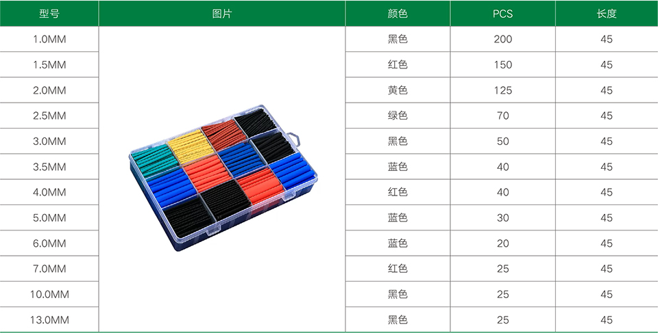 當(dāng)前位置:主頁 > 產(chǎn)品展示 > 家用熱縮管套裝 > 熱縮管套裝800PCS(盒裝)