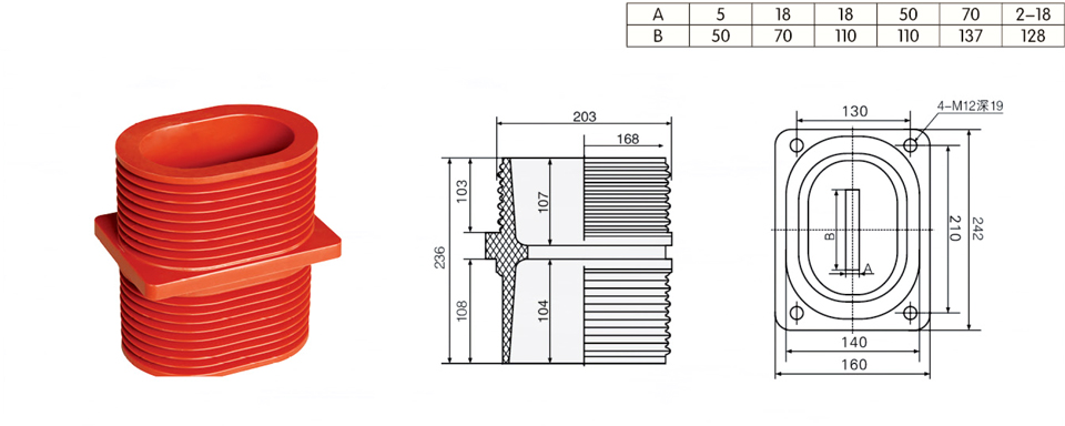 Insulation Bushing | TG1-10Q/128 | 10KV | 100X100 | 250 | DOWE |