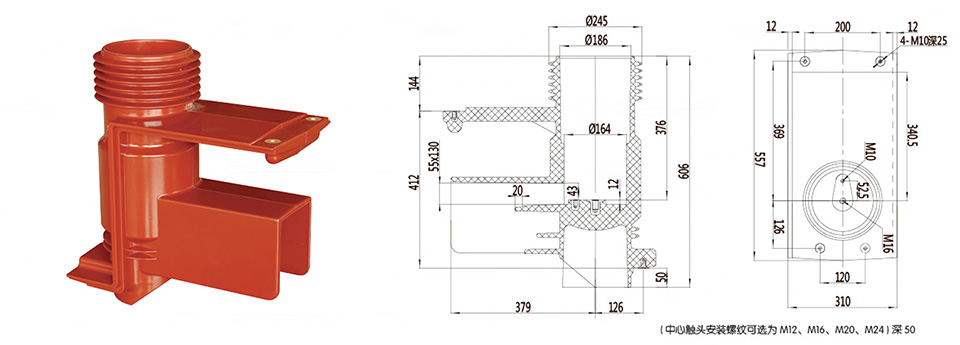 Contact box is an epoxy resin APG process pressure gel molding structure, which is used in various handcart switch cabinets and plays the role of insulation isolation and connection transition.