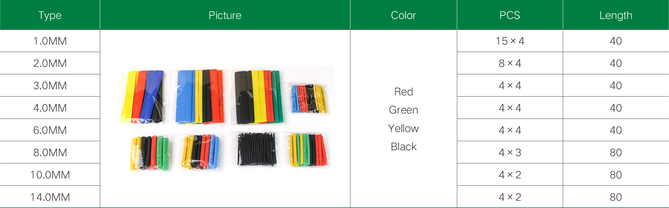 Heat shrink tubing kits for home use are available in different sizes and specifications of heat shrink tubing to accommodate wires and cables of different diameters and lengths. Users can choose the right size of heat shrinkable tube according to actual needs to ensure complete coverage of wires or cables, and provide good insulation effect.