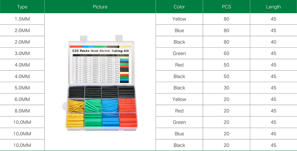Home > Products > Household heat shrink tubing set > Heat shrink tube set 530PCS (boxed)