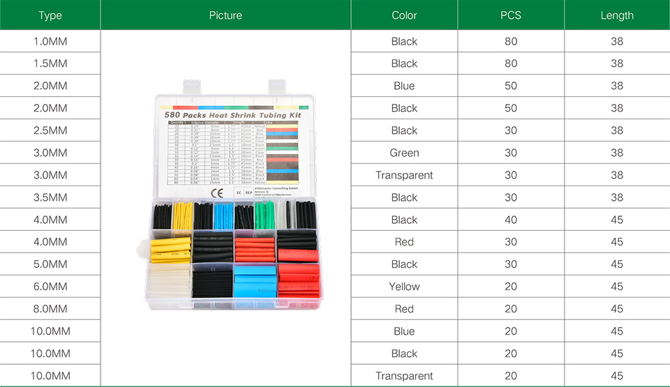 Home > Products > Household heat shrink tubing set > Heat shrink tube set 580PCS (boxed)