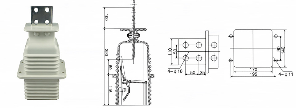 Contact box is an epoxy resin APG process pressure gel molding structure, which is used in various handcart switch cabinets and plays the role of insulation isolation and connection transition.