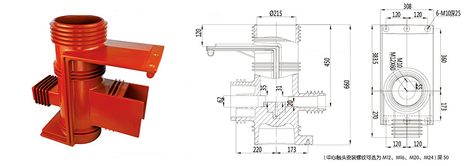 Contact box is an epoxy resin APG process pressure gel molding structure, which is used in various handcart switch cabinets and plays the role of insulation isolation and connection transition.